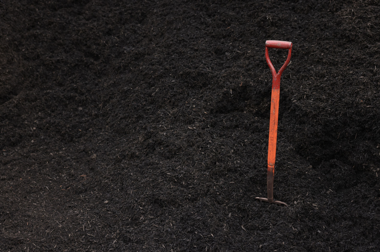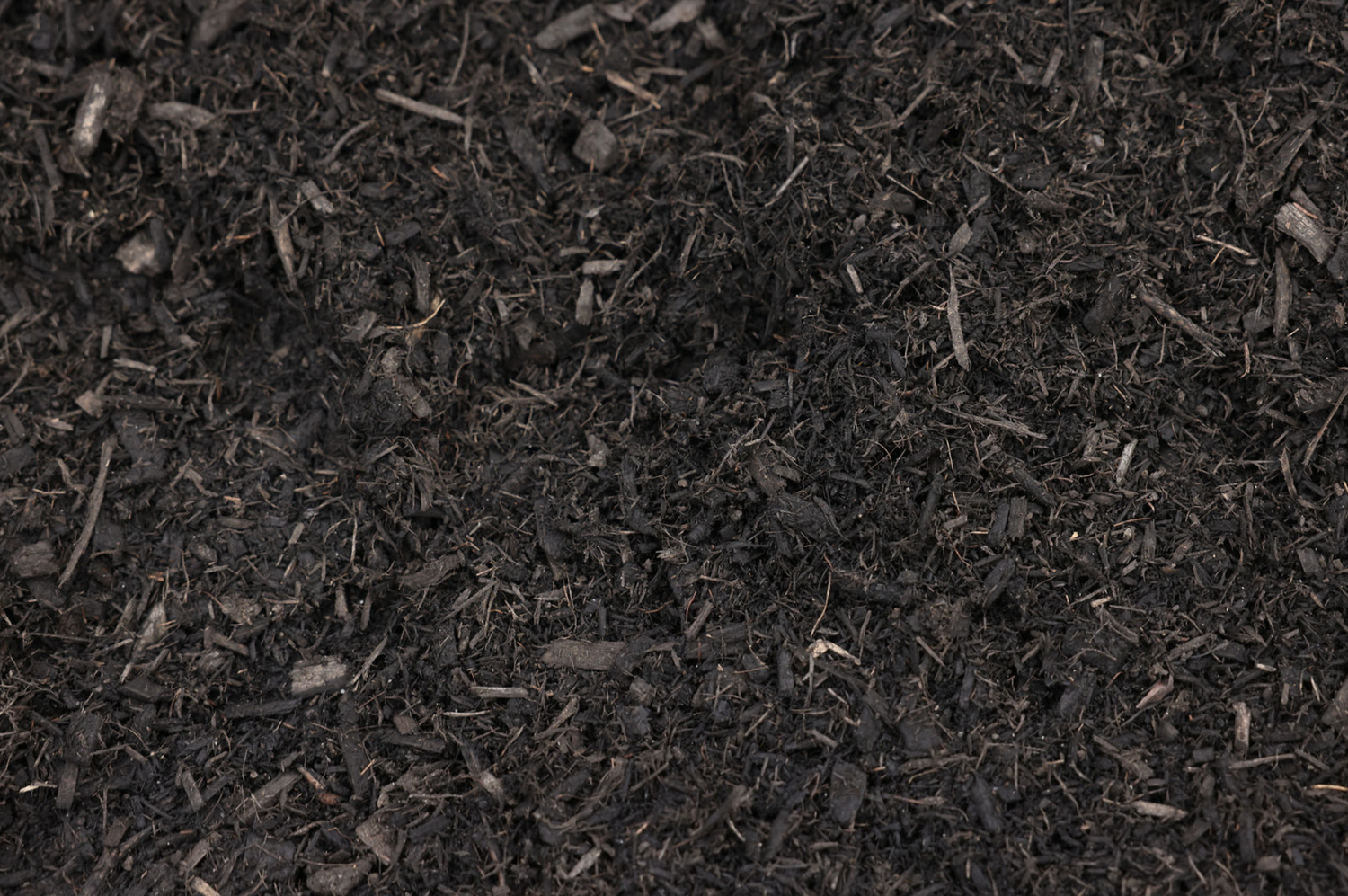 Dark black mulch using a black powder colorant from a mix of pine, spruce and fir. Quantity is by the yard.